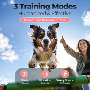 Beep (1–3 levels) Vibration (1–3 levels) Safe Static Shock (0–16 levels) The collar remembers your last setting for seamless training each time.